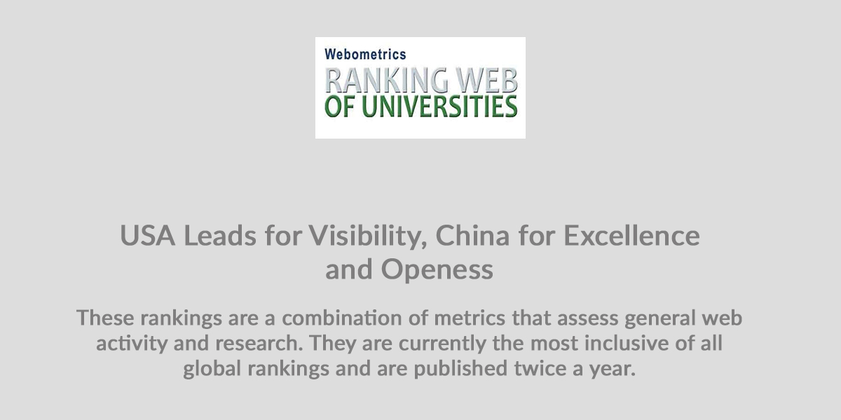 Webometrics: USA Leads for Visibility, China for Excellence and Openess