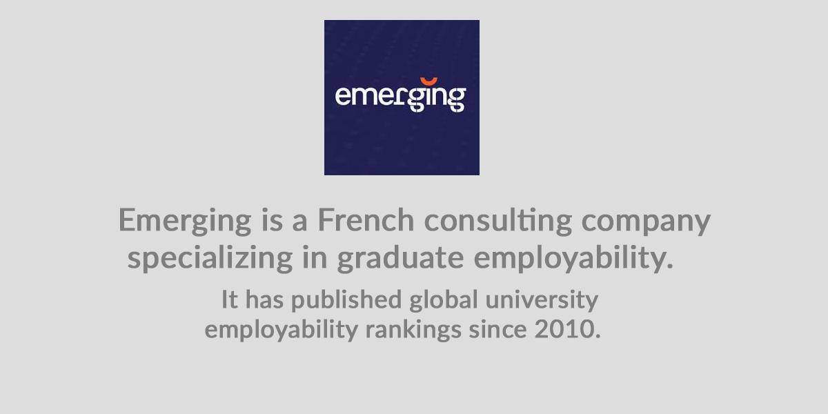 Emerging is a French consulting company specializing in graduate employability. It has published global university employability rankings since 2010. These were published in the International Herald Tribune, the New York Times, and more recently Times Higher Education.