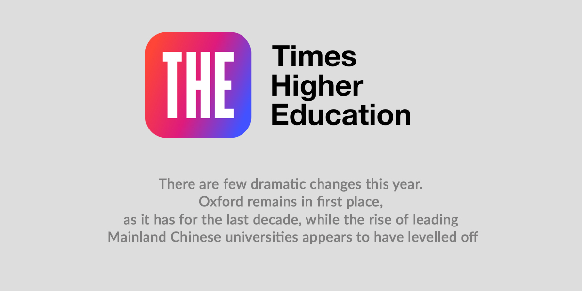 The latest edition of the Times Higher Education (THE) World University Rankings has just been announced. There are few dramatic changes this year. Oxford remains in first place, as it has for the last decade, while the rise of leading Mainland Chinese universities appears to have levelled off.